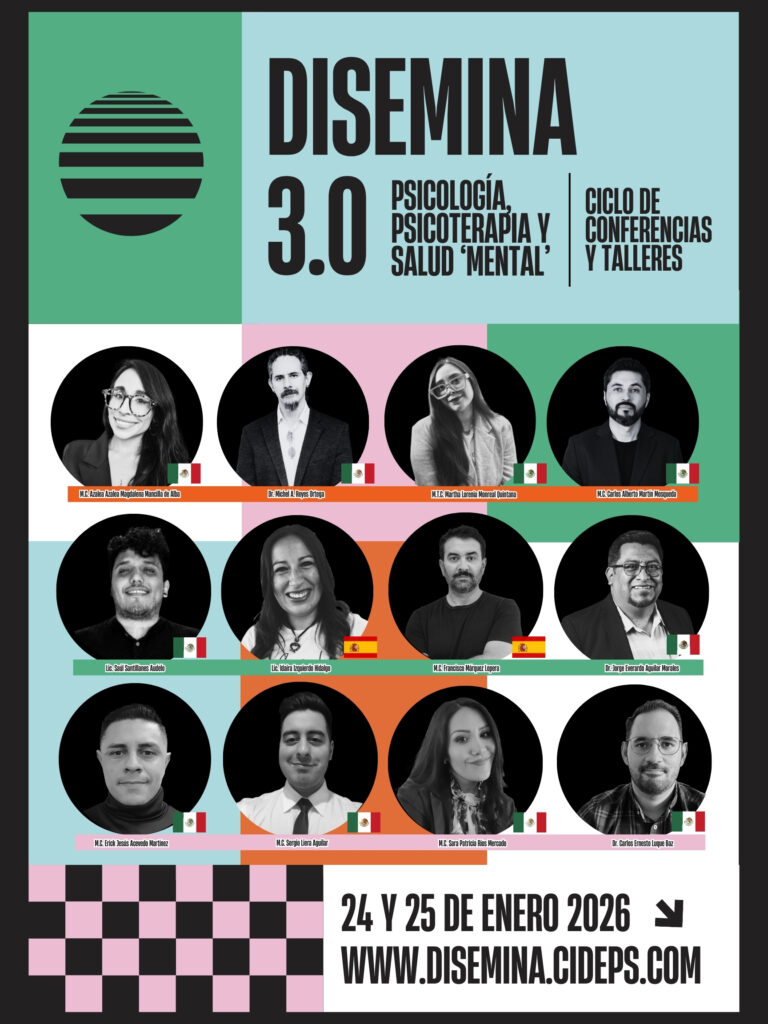DISEMINA es una oportunidad para reforzar o descubrir una visión actualizada de la psicología y psicoterapia mientras conectas con una comunidad comprometida con el avance y la divulgación de una psicología científica y una práctica profesional ética.